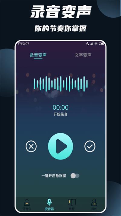 变声软件是集语音变声和文字变声为一体的变声器,海量语音包大家可以随意选择进行使用,不同场合获取不一样的风格和体验,你的节奏你来掌握,支持微信、qq等多种方式快速分享音频。